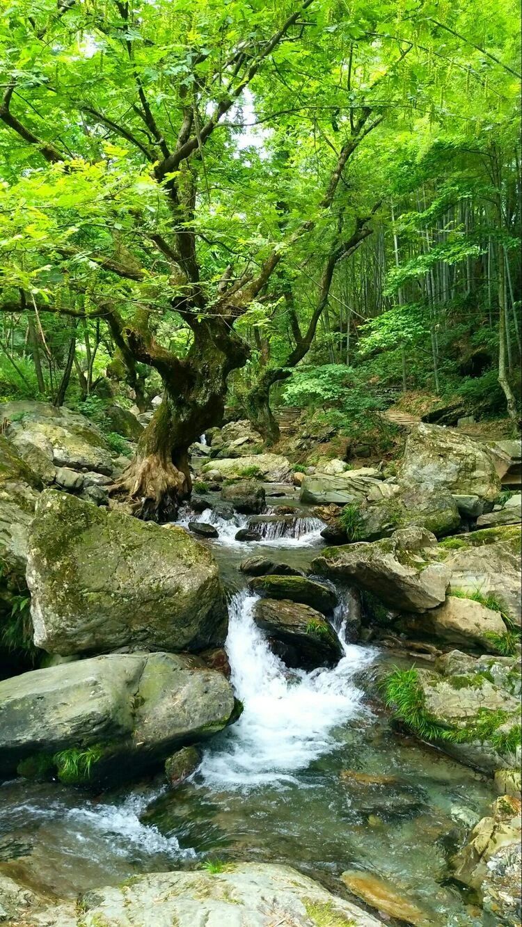 龙脊沟藏在群山褶皱里,是九天仙寓最灵动的伏笔。沿着青苔覆盖的石阶下行,两侧的岩壁渐渐靠拢,天空被挤成一条细长的蓝带,偶有飞鸟掠过,留下几声清脆的啼鸣。沟底的溪水从不是奔腾的模样,它更像个贪玩的孩童,在石头间穿梭跳跃:遇到平缓处,便聚成一汪清浅的潭水,映出两岸的树影与云影;碰到凸起的岩石,便顺势滑下,溅起一串细碎的水花,打湿行人的裤脚,带来一阵清凉。落叶飘落在水面,成了溪水的信使,载着山间的气息,悠悠向远方漂去。
